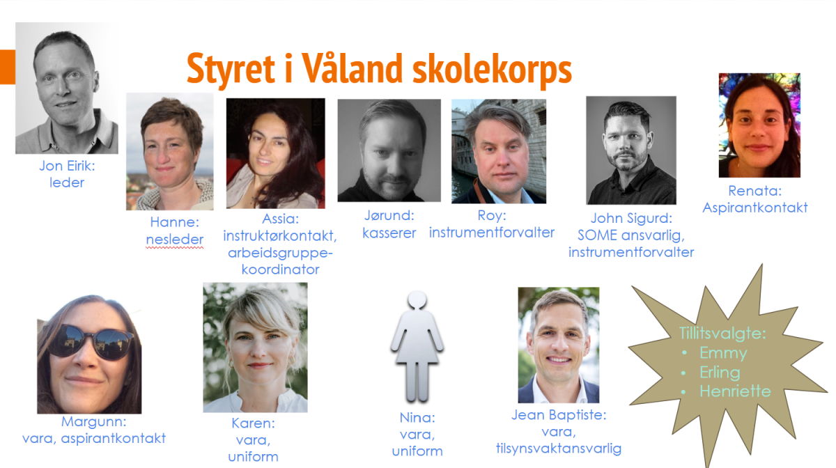 Våland skolekorps avholdt sitt årsmøte 19. mars 2025 og følgende ble valgt: